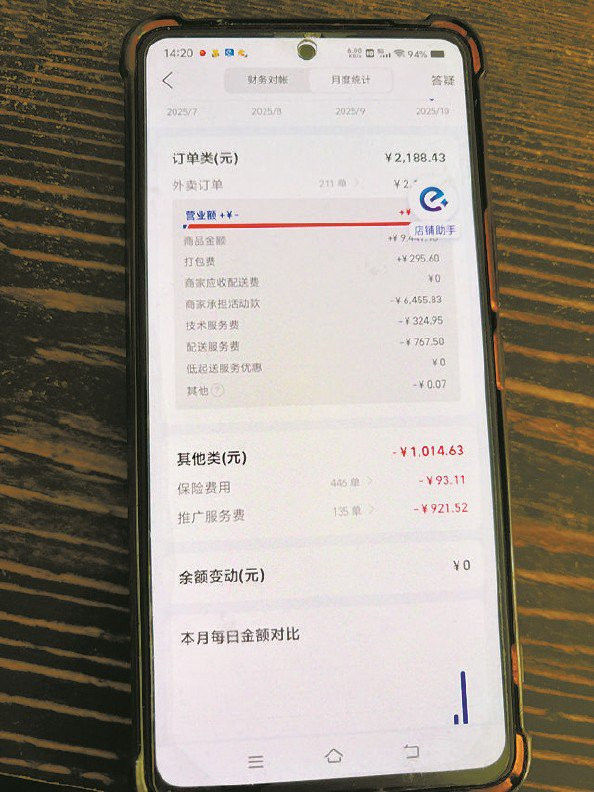 实际上,张先生的遭遇并非个例。近期,已有多个外卖商家反映:有的被平台擅自开通付费“推广服务”,有的商品价格被平台单方面调低,还有的在“什么都不知道”的情况下被开通补贴活动。“小餐饮店本就利润微薄,平台不经过我们同意,就擅自扣费、压价,根本扛不住。”不少商家抱怨,商家与平台是合作关系,任何涉及商家成本的操作,平台都应提前说明、由商家自主决定,而非单方面“说了算”。